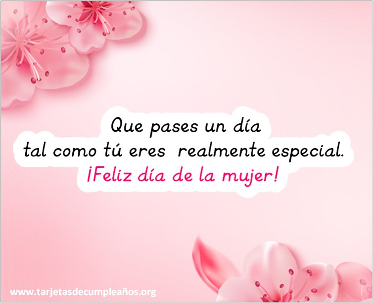 La mejor colección de tarjetas de Día de la Mujer para una presona especial digitales con frases creativas y originales para imprimir o compartir online gratis. Las tarjetas de Día de la Mujer están echas para dejar un sensación de bienestar y emocionar a la persona que las recibe el objetivo es tocar su corazón.
