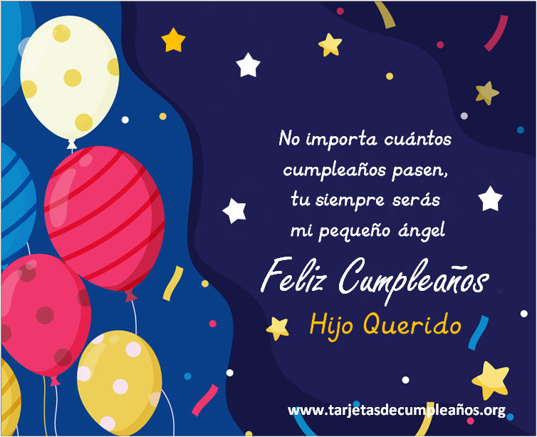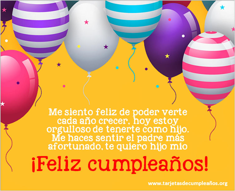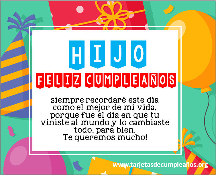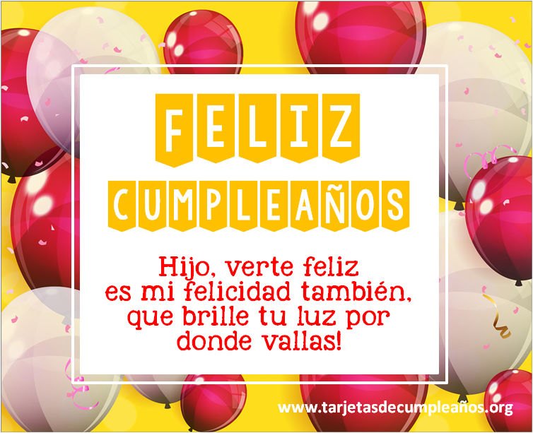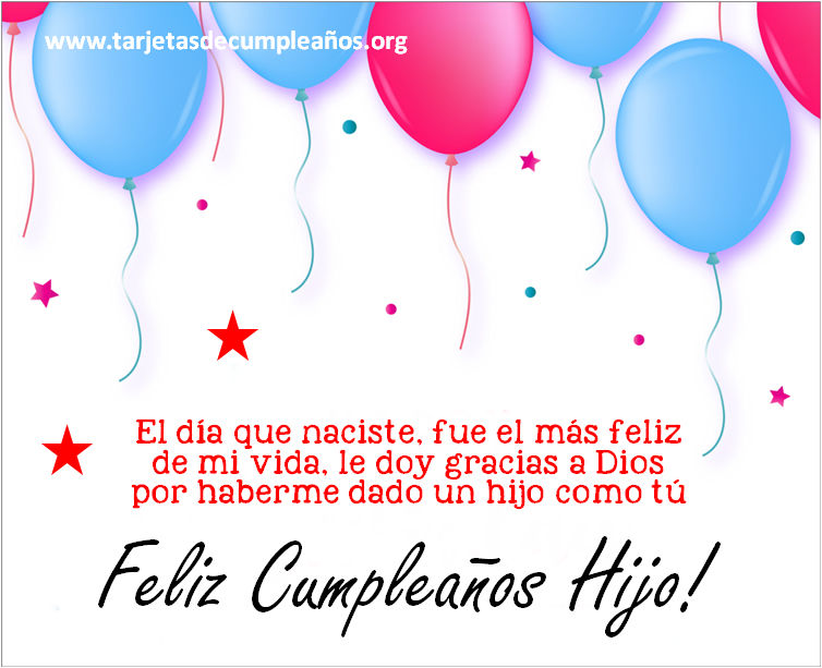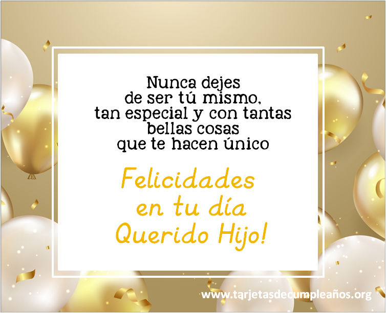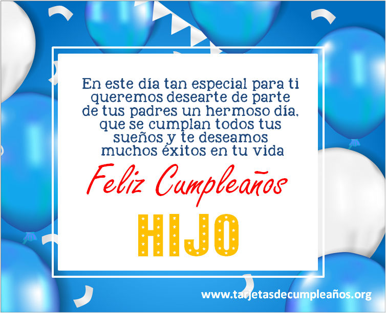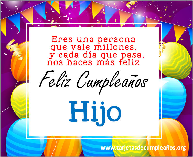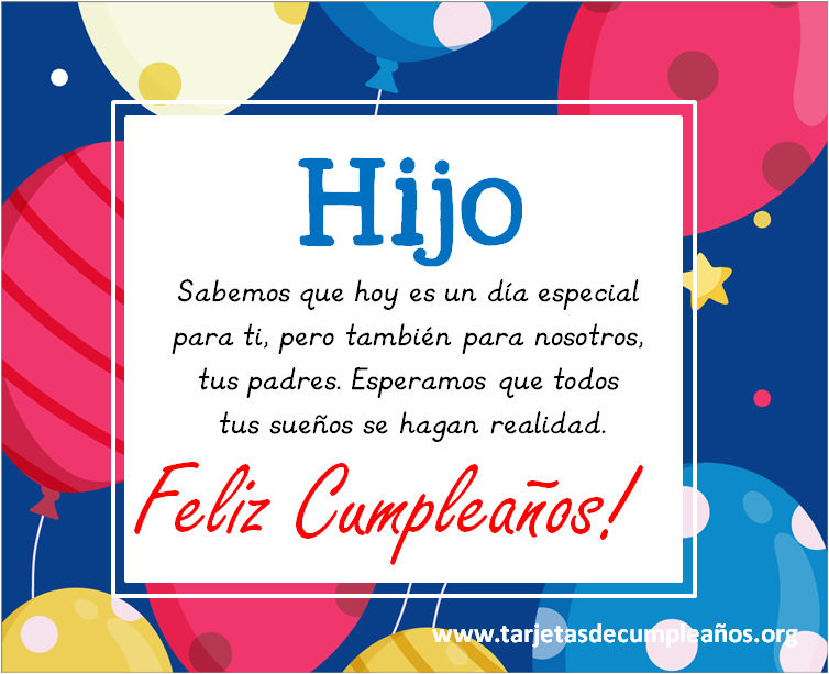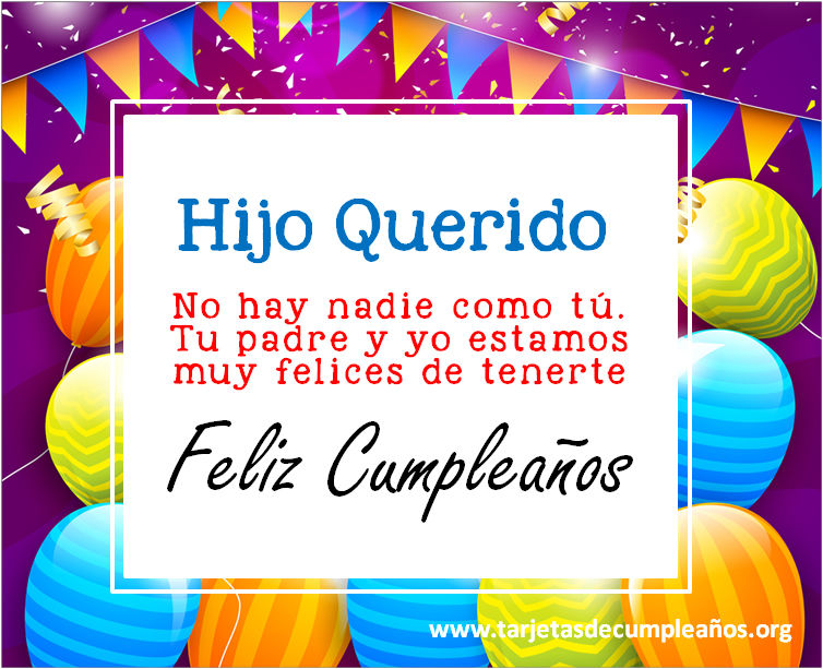 La Mejor colección de tarjetas de cumpleaños para un hijo digitales con frases creativas y originales para imprimir o compartir online gratis. Las tarjetas de nacimiento están echas para dejar un sensación de bienestar y emocionar a la persona que las recibe el objetivo es tocar su corazón.