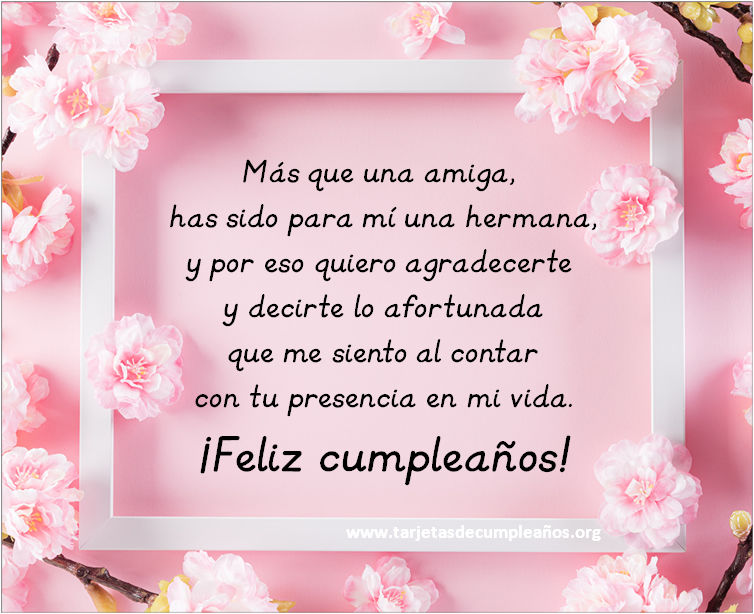 12 Más que una amiga, has sido para mí una hermana, y por eso quiero agradecerte y decirte lo afortunada que me siento al contar con tu presencia en mi vida. ¡Feliz cumpleaños!