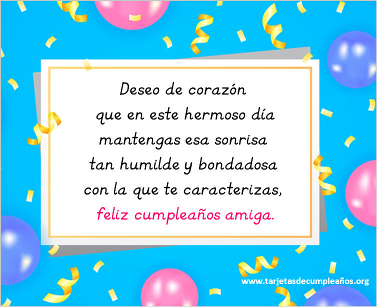 Hace llegar tu saludo a tu amiga de una manera original. Busca entre nuestras bonitas imágenes de feliz cumpleaños con frases especiales. Tarjetas postales de Feliz cumpleaños para tu amiga las podes descargar gratis y son perfectas para ser enviadas por cualquier red social ( whatsapp, facebook, instagram).