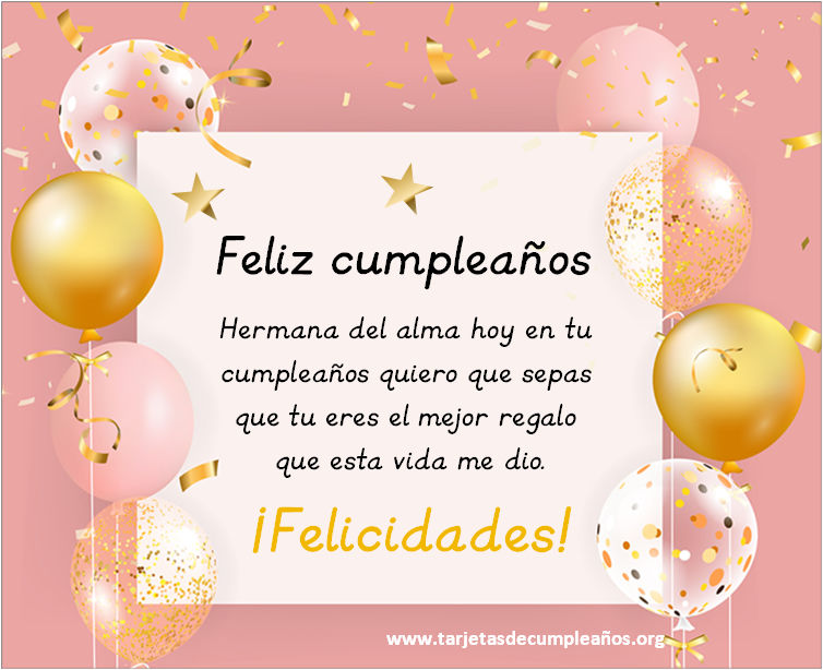 6 Feliz cumpleaños… Hermana del alma hoy en tu cumpleaños quiero que sepas que tu eres el mejor regalo que esta vida me dio. ¡Felicidades!