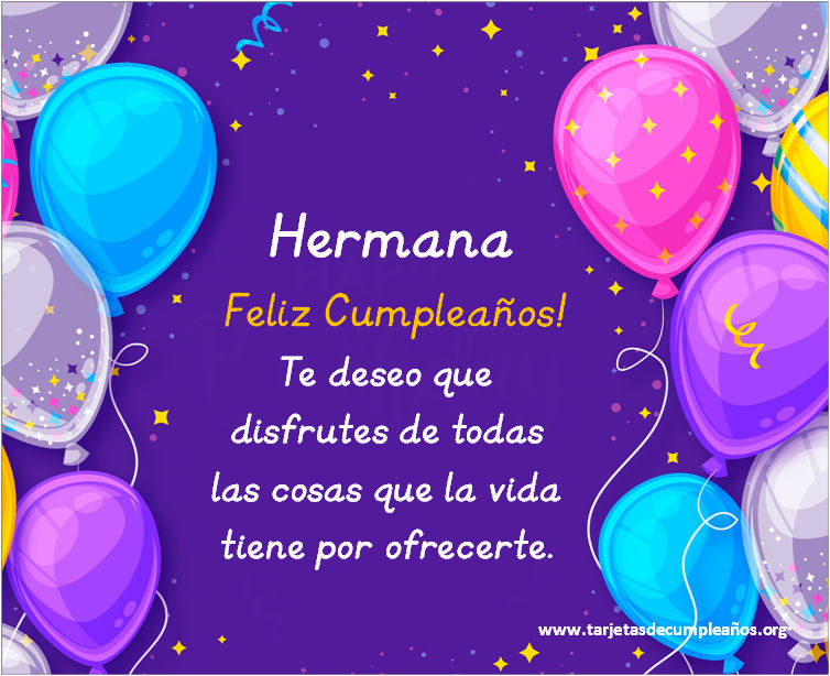 1 Hermana Feliz Cumpleaños! Te deseo que disfrutes de todas las cosas que la vida tiene por ofrecerte.